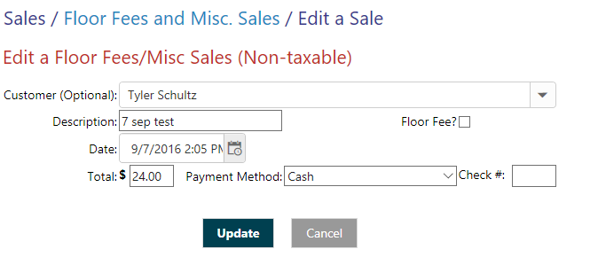 The floor fee checkbox allows you to toggle a sale over to a floor fee rather than having to delete the sale and re-create a floor fee.